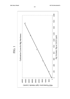 - An automated method using a pH-buffered liquid and a magnesium coordinating fluorescing reagent to quantify soluble magnesium concentrations via fluorescence, allowing for the determination of total hardness by displacing calcium with magnesium and measuring the fluorescence of coordinated magnesium compounds.