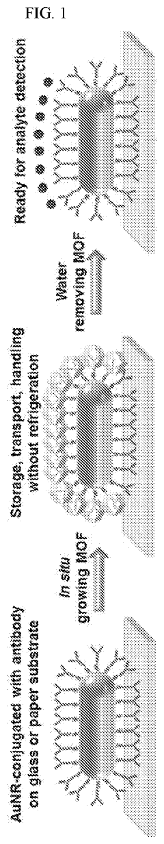 - A metal-organic framework (MOF) protected plasmonic sensor is developed, comprising a nanostructure core, a biomolecule, and a MOF, which enhances thermal stability and sensitivity by forming a protective MOF layer around biomolecules on biosensor surfaces, allowing storage and use at ambient and elevated temperatures without the need for refrigeration.