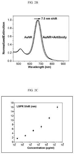 - Nanostructure design for enhanced thermal stability: Specific nanostructure designs can significantly improve the thermal stability of plasmonic biosensors. These include core-shell nanoparticles, multilayer structures, and geometrically optimized plasmonic elements that resist thermal deformation. The careful engineering of nanostructure dimensions, spacing, and arrangement helps maintain consistent plasmonic resonance properties across temperature variations, resulting in biosensors that deliver reliable performance in thermally challenging environments.