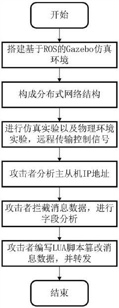 - By combining the Ettercap network sniffing tool and the NMAP port scanning tool, the control signal is intercepted and tampered, and the LUA language is used to write a filter to perform field analysis and tampering in the TCPROS transmission packet between the ROS MASTER and the slave machine, and implement a data tampering attack.