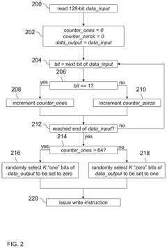 Technical Solution: IBM has developed a comprehensive RRAM security evaluation framework that combines hardware-level security analysis with advanced cryptographic implementations. Their approach utilizes Physical Unclonable Functions (PUFs) based on the inherent variability of RRAM devices to generate unique security keys. IBM's research demonstrates that RRAM-based PUFs can achieve entropy levels exceeding 0.9 bits per cell, making them highly effective for secure key generation. Additionally, they've implemented side-channel attack resistance by incorporating specialized sensing circuits that minimize power consumption patterns during read operations, effectively reducing information leakage. IBM has also pioneered techniques to detect and mitigate fault injection attacks by monitoring voltage and timing anomalies during RRAM operations[1][3].