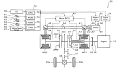 - A power output apparatus that includes a deterioration factor calculation module, an output limit setting module, an output limit correction module, a power demand setting module, and a control module to manage the discharge of the accumulator, ensuring the output limit is set to prevent battery deterioration and optimize engine operation stop regions by temporarily adjusting the output limit based on the deterioration factor and power demand.