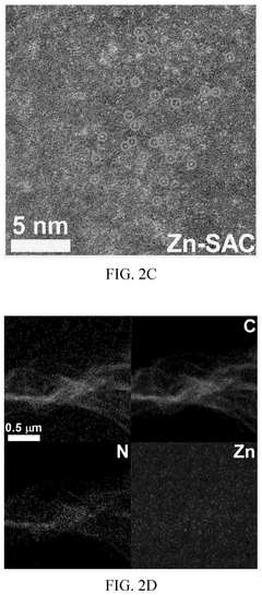 - A graphene-based zinc single atom catalyst (Zn-SAC) is synthesized using a chemical vapor deposition process, where Zn2+ ions are confined by electrostatic interactions with functional groups from graphene oxide, resulting in a catalyst with enhanced catalytic activity for oxygen reduction and evolution reactions.