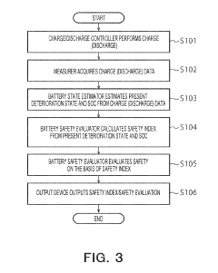 - A method that measures various battery variables like direct current internal resistance, temperature, open-circuit voltage, state of health, state of charge, and insulation resistance, calculates their variations, and uses a safety function to provide a numerical State of Safety (SOS) value, allowing for continuous monitoring and automatic notifications of safe, warning, or unsafe states.