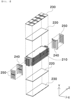Implementing advanced thermal management systems in blade batteries to prevent overheating and potential fire hazards. These systems may include cooling mechanisms, heat dissipation structures, and temperature monitoring devices to maintain optimal operating conditions and reduce the risk of thermal runaway.- Thermal management systems: Implementing advanced thermal management systems in blade batteries to prevent overheating and potential fire hazards. These systems may include cooling mechanisms, heat dissipation structures, and temperature monitoring devices to maintain optimal operating conditions and reduce the risk of thermal runaway.