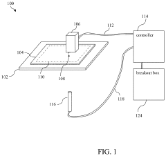 Comprehensive system integration and control mechanisms are essential for scaling AFM memory technologies. These include precise positioning systems that maintain nanometer-level accuracy across larger scanning areas, thermal management solutions that prevent drift and distortion, and integrated circuit designs that efficiently interface with conventional computing systems. Advanced feedback control systems continuously adjust operational parameters to maintain optimal performance as system size increases, while specialized software algorithms optimize data access patterns for improved throughput.Expand Specific Solutions