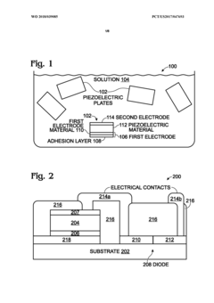 Development of flexible and stretchable piezoelectric sensors enables their application on curved or dynamic surfaces. This innovation improves scalability by allowing sensors to conform to various shapes and sizes, expanding their use in wearable technology and structural health monitoring.Expand Specific Solutions04 Multi-functional piezoelectric sensor systems