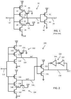 Low-power Schmitt trigger designs focus on minimizing power consumption while maintaining reliable hysteresis operation. These implementations employ techniques such as dynamic biasing, subthreshold operation, and power gating to reduce static and dynamic power consumption. Special circuit topologies have been developed to maintain adequate noise margins and switching performance while operating at reduced supply voltages, making them suitable for battery-powered and energy-harvesting applications.Expand Specific Solutions05 Schmitt Trigger with Adjustable Hysteresis