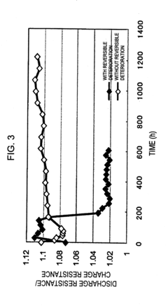 Technical Solution: LG Energy Solution has developed an advanced Battery Management System (BMS) specifically designed for second-life applications that addresses degradation under fast cycling conditions. Their solution incorporates real-time electrochemical impedance spectroscopy (EIS) to continuously monitor internal resistance changes during rapid charge-discharge cycles[1]. The system employs machine learning algorithms trained on extensive cycling data to predict capacity fade trajectories and adjust operational parameters accordingly. A key innovation is their adaptive thermal management system that dynamically modulates cooling intensity based on cycling rates, maintaining optimal temperature profiles even during aggressive use cases[3]. Their proprietary electrolyte additives have demonstrated a 30% reduction in lithium plating during fast charging scenarios compared to conventional formulations[2]. Additionally, LG has implemented a novel electrode design with gradient porosity that facilitates more uniform lithium-ion distribution during rapid cycling, reducing localized stress points that accelerate degradation.