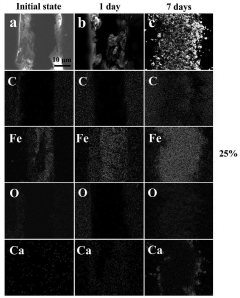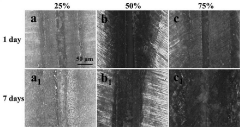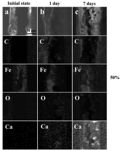 - The biological self-healing method of simulated marine anti-corrosion coating is used to mix the putrefactive Shewanella bacterial suspension with simulated seawater and immerse it into the metal damaged by the anti-corrosion coating. The self-repair of the coating is achieved through the biomineralization of microorganisms. The extracellular electron transfer (EET) process is used to regulate the content of organic carbon sources in the environment to form a dense and uniform biomineralized film to shield and repair damaged areas of the coating.