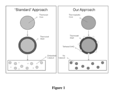 Technical Solution: Battelle Memorial Institute has developed proprietary self-healing polymer composite technology focused on critical infrastructure and defense applications. Their approach combines microencapsulated healing agents with catalyst-embedded polymer matrices to create autonomous repair systems. When damage occurs, the microcapsules rupture, releasing healing agents that polymerize upon contact with embedded catalysts, effectively sealing cracks and restoring structural integrity[1]. Battelle's innovation includes temperature-resistant self-healing composites capable of operating in extreme environments (-40°C to 180°C), making them suitable for aerospace and automotive applications. Their technology incorporates multi-walled carbon nanotubes (MWCNTs) to enhance both mechanical properties and healing efficiency, achieving up to 90% recovery of fracture toughness after damage[3]. Battelle has also developed specialized coatings with self-healing capabilities for corrosion protection in marine environments, extending service life by up to 300% compared to conventional protective coatings[5].