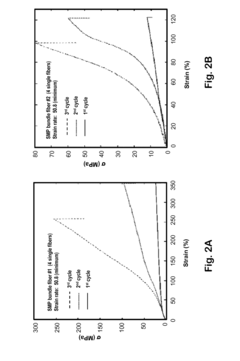 Shape memory polymers can be incorporated into composites to provide both damage containment and stiffness recovery capabilities. When impact damage occurs, the shape memory effect can be triggered by stimuli such as heat or electricity, causing the material to return to its original configuration. This mechanism helps close cracks and restore the structural integrity of the composite, effectively recovering stiffness and containing further damage propagation.Expand Specific Solutions05 Nanoparticle-reinforced self-healing systems