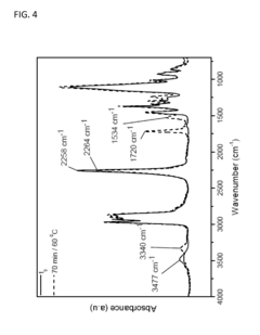 - Thermal cycling resistance in self-healing polymers: Self-healing polymer networks can be formulated to withstand repeated thermal cycling without degradation. These materials incorporate specialized cross-linking agents and thermally responsive components that allow the polymer to expand and contract with temperature changes while maintaining structural integrity. The self-healing mechanisms are designed to repair microcracks that form during thermal cycling, preventing cumulative damage and extending the operational lifetime of components exposed to fluctuating temperatures.