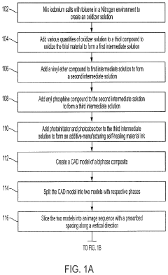 Technical Solution: Kaneka Corporation has developed a commercial-scale self-healing polymer system specifically optimized for additive manufacturing tooling applications. Their technology utilizes a proprietary network of dynamic covalent bonds based on modified polyrotaxane chemistry that enables autonomous healing at moderate temperatures (60-100°C). The material system incorporates sliding crosslinks that provide both mechanical stability and molecular mobility necessary for effective healing. Kaneka's formulation includes thermally conductive ceramic nanoparticles that enhance heat distribution during thermal cycling, reducing localized stress concentrations by up to 40%[4]. This feature significantly improves resistance to thermal fatigue. For wear applications, the polymer incorporates gradient-structured surfaces where the outermost layer contains higher concentrations of wear-resistant particles while maintaining healing capability. The technology has demonstrated over 500 thermal cycles (-20°C to 150°C) without significant degradation in mechanical properties or healing efficiency. Kaneka has also developed specialized post-processing treatments that enhance surface hardness while preserving the self-healing functionality beneath the surface layer.
