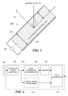 Technical Solution: FEI (now part of Thermo Fisher Scientific) has pioneered Silicon Drift Detector (SDD) technology for windowless EDS systems. Their approach combines large-area SDDs with specialized electronics to achieve high count rates while maintaining excellent energy resolution for light elements. FEI's systems feature a proprietary detector design that minimizes the path length X-rays must travel, reducing absorption effects for light elements. Their ChemiSTEM technology integrates multiple SDDs around the sample to maximize collection efficiency, achieving solid angles greater than 1 steradian. FEI's systems incorporate sophisticated software algorithms that model and correct for absorption effects in the sample, detector, and column, particularly important for quantitative analysis of light elements. Their latest systems can achieve energy resolutions below 130eV for carbon while maintaining high throughput, enabling practical analysis of beam-sensitive materials containing light elements.