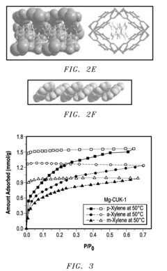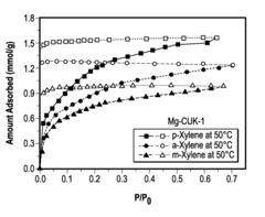 - A porous coordination polymer material based on Mg(II) and 2,4-pyridinedicarboxylic acid with a 1-D pore structure, synthesized using an aqueous microwave-assisted method, selectively adsorbs p-isomers of DVB at room temperature, allowing for the separation of p-DVB from crude mixtures by preferential binding and subsequent desorption.
