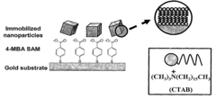 - A method for preparing cetyltrimethylammonium bromide-capped gold nanoparticles of specific shapes, such as cubes, rods, and tetrapods, is developed, which are immobilized on self-assembled monolayers to enhance Raman signals by overlapping excitation wavelengths with their plasmon resonance bands, achieving significant signal enhancement factors.