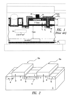 Technical Solution: STMicroelectronics has developed a comprehensive silicon carbide (SiC) technology platform called STPOWER SiC, which includes both MOSFETs and diodes optimized for power electronics applications. Their third-generation SiC MOSFETs feature trench gate architecture that achieves 50% reduction in RDS(on) per unit area compared to planar designs, while maintaining robust short-circuit withstand capability exceeding 5μs. ST has implemented a unique split-gate design that balances performance and reliability concerns inherent to trench structures. The company has secured long-term SiC substrate supply through strategic agreements with Wolfspeed and Cree, while simultaneously developing internal SiC wafer manufacturing capabilities. Their automotive-grade SiC devices are qualified to AEC-Q101 standards with extended temperature operation up to 200°C and demonstrate switching frequencies above 100kHz with minimal switching losses, enabling more compact power conversion systems for electric vehicles.