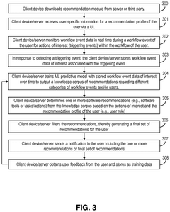 - A computer-implemented method using machine learning predictive models trained with workflow event data from multiple devices to generate real-time software recommendations based on user-specific profiles, identifying actions of interest and suggesting optimal tools or tasks to improve workflow efficiency, while also updating the model with user feedback.