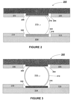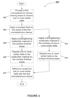 The physical design and geometry of solder joints significantly impact their reliability. Optimized pad designs, specialized joint shapes, and strategic reinforcement structures can distribute stress more effectively and prevent failure. Techniques such as corner rounding, standoff height optimization, and thermal stress relief features enhance durability under thermal cycling and mechanical stress. Novel interconnect architectures provide improved reliability for specific application environments.Expand Specific Solutions04 Manufacturing process optimization