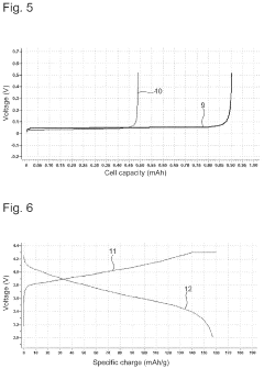 Interface engineering is critical for optimizing solid electrolyte performance in anode-free batteries. Techniques include surface coatings, buffer layers, and chemical modifications to reduce interfacial resistance and improve compatibility between electrolytes and electrodes. Effective interface engineering prevents side reactions, stabilizes the solid electrolyte interphase (SEI), and facilitates uniform lithium deposition during cycling. Performance benchmarks include minimal interfacial impedance growth during cycling, uniform lithium plating/stripping, and long-term cycling stability with high Coulombic efficiency.Expand Specific Solutions05 Performance metrics and testing protocols