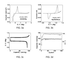 Technical Solution: Samsung has developed a solid-state magnesium battery technology that utilizes a novel magnesium-ion conducting solid electrolyte composed of magnesium borohydride and polyethylene oxide (PEO) polymer matrix. Their approach focuses on addressing the dendrite formation issues common in conventional magnesium batteries by employing a stable solid electrolyte interface (SEI) layer. Samsung's research teams have achieved energy densities of approximately 420 Wh/kg in laboratory conditions, significantly higher than current lithium-ion batteries. The company has also developed proprietary cathode materials based on magnesium-sulfur chemistry that demonstrate improved cycling stability with capacity retention of over 80% after 500 cycles. Samsung's solid-state magnesium batteries operate effectively across a wider temperature range (-20°C to 60°C) compared to conventional lithium-ion batteries.