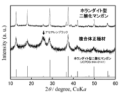 - A composite positive electrode material comprising manganese oxide with a tunnel structure and carbon material, produced by reducing a dispersion solution of carbon in potassium permanganate and hydrothermal treatment, is used to enhance calcium ion mobility and conductivity.