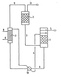 The primary technical challenges in solvent recovery include energy-intensive separation processes, handling of azeotropic mixtures, and degradation of solvent quality over multiple recovery cycles. Current recovery technologies typically achieve 75-85% efficiency, with energy consumption representing 40-60% of recovery costs. Membrane-based systems show promise but face scaling limitations and fouling issues in industrial applications.