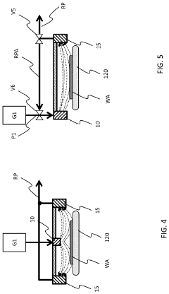 Roll-to-roll spatial ALD systems enable high-throughput deposition on flexible substrates such as polymers, textiles, and thin metal foils. These systems transport the substrate continuously through separated precursor zones, allowing for rapid coating of large areas. This approach is particularly valuable for manufacturing flexible electronics, solar cells, and barrier films where traditional batch processing would be inefficient.Expand Specific Solutions03 Multi-wafer and large-area spatial ALD techniques