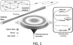 - A cavity-optomechanical device is used to create an interface that increases photon-phonon interaction time and optomechanical coupling rate, allowing for the manipulation of spin qubits through a stress field generated by mechanical oscillations driven by an optical field, using telecommunication wavelength photons and operating at room temperature.