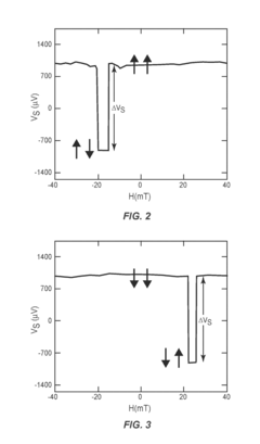 - Emerging Spintronic Applications: Beyond conventional memory applications, spintronic devices are being developed for various emerging applications. These include neuromorphic computing systems that mimic brain functionality, quantum computing elements utilizing spin qubits, ultra-sensitive magnetic field sensors, energy harvesting devices, and RF/microwave components. These applications leverage unique properties of spin-based devices such as inherent non-linearity, stochasticity, and frequency-dependent behavior to enable new computing paradigms and sensing capabilities.