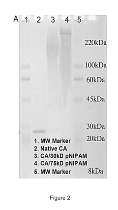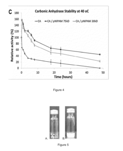 - The method involves covalently attaching stimulus-responsive polymers to enzymes using controlled radical polymerization, forming reversible nanoparticle structures that provide structural support and maintain enzyme stability by collapsing around the enzyme at elevated temperatures, preventing denaturation.