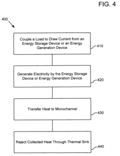 Standards for thermal management in microchannel cooling systems define the requirements for heat dissipation efficiency, temperature control, and thermal resistance. These standards ensure that microchannel cooling systems can effectively manage heat in electronic devices, particularly in high-performance computing environments. They specify testing methodologies, performance metrics, and acceptable temperature ranges for various applications, helping manufacturers design compliant cooling solutions.- Thermal Management Standards for Microchannel Cooling Systems: Standards and certification requirements for thermal management in microchannel cooling systems focus on heat dissipation efficiency, temperature control, and thermal resistance metrics. These standards establish testing methodologies to evaluate cooling performance under various operational conditions and ensure consistent thermal management across different applications. Compliance with these standards ensures that microchannel cooling systems can effectively manage heat loads in electronic devices, data centers, and other high-performance computing environments.