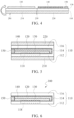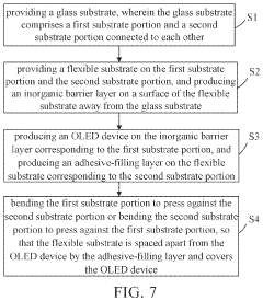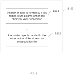 Hybrid encapsulation systems combine different barrier technologies to achieve optimal protection for flexible OLEDs. These systems may incorporate thin-film barriers, laminated films, and desiccant materials in a single encapsulation solution. The combination of different barrier approaches provides redundant protection against moisture and oxygen while addressing the mechanical challenges of flexible displays. Hybrid systems often include self-healing materials that can repair minor damage to maintain barrier integrity during repeated flexing.Expand Specific Solutions05 Flexible substrate and encapsulation integration