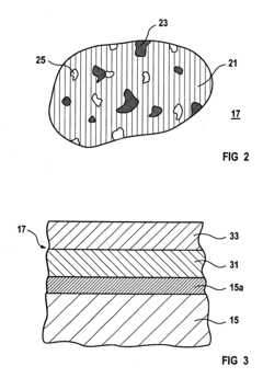 Ceramic thermal barrier coatings must also function as environmental barriers in many applications, protecting against hot corrosion, oxidation, and degradation from contaminants. These coatings are designed to resist infiltration by molten silicates (CMAS), sulfates, and other corrosive species present in combustion environments. Specialized ceramic compositions and microstructural features are incorporated to enhance resistance to these environmental attacks. Self-healing capabilities and reaction layers that form protective scales are being developed to extend coating lifetimes in aggressive operating conditions.Expand Specific Solutions