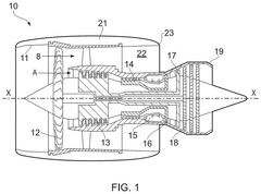 Technical Solution: Mitsubishi Heavy Industries has developed advanced thermal barrier coating systems for gas turbines featuring yttria-stabilized zirconia (YSZ) with 6-8% yttria content as the primary ceramic material. Their proprietary TBC systems utilize both air plasma spray (APS) and electron beam physical vapor deposition (EB-PVD) techniques, with the latter producing columnar microstructures that enhance strain tolerance during thermal cycling. MHI's TBC systems typically consist of a MCrAlY bond coat (150-250 μm thick) applied via low-pressure plasma spray (LPPS) or high-velocity oxygen fuel (HVOF) methods, followed by a ceramic top coat ranging from 200-500 μm in thickness. Their coatings comply with JIS H8304 standards for thermal spray coatings and ASTM C633 for adhesion strength testing, consistently achieving bond strengths exceeding 25 MPa. MHI has also developed specialized TBC formulations incorporating lanthanum zirconate and gadolinium zirconate for enhanced CMAS resistance, with thermal conductivity values as low as 0.9-1.3 W/m·K at operating temperatures. These advanced TBCs meet Japanese Industrial Safety and Health Law requirements and conform to ISO 13123 specifications for thermal spray process parameters. MHI's coating systems undergo rigorous thermal cycling testing (>1000 cycles at 1100°C) and erosion resistance evaluation per ASTM G76 standards.