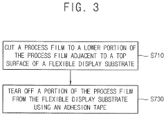 - A method using a process film with a base layer prepared on a glass substrate, where cells are formed and covered with a process film to separate and cut the base layer into multiple flexible substrates, incorporating adhesion layers and anti-static coatings to enhance bonding strength and prevent contamination.