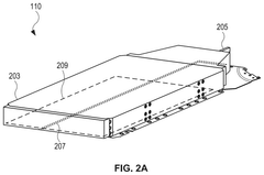 Technical Solution: Toyota has pioneered a structural battery approach that integrates battery cells directly into vehicle chassis components. Their technology utilizes solid-state electrolytes combined with carbon-fiber reinforced structural elements to create load-bearing battery modules. Toyota's research focuses on developing multifunctional materials that can simultaneously store energy and withstand mechanical loads. Their latest structural battery prototypes incorporate a honeycomb structure design that distributes mechanical stress while maximizing energy storage capacity. Toyota has reported achieving stiffness values of 25 GPa while maintaining energy densities of approximately 180 Wh/kg in their experimental structural battery components. The company is currently testing these batteries in concept vehicles, where the floor pan and certain body panels serve as energy storage components, reducing overall vehicle weight by an estimated 15%.