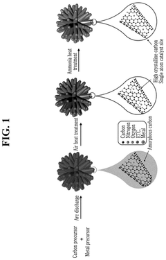 Various synthesis strategies have been developed to achieve uniform dispersion of single atoms on support materials. These include atomic layer deposition, wet impregnation followed by controlled calcination, co-precipitation, and defect engineering approaches. Advanced techniques such as high-temperature atom trapping, photochemical reduction, and electrochemical deposition are also employed. The key challenge in synthesis is preventing metal atom aggregation while achieving high metal loading, which often requires precise control of reaction conditions and innovative stabilization strategies.Expand Specific Solutions04 Applications in energy conversion and environmental remediation