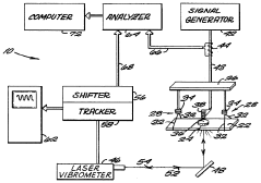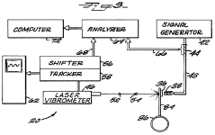 - Combining laser vibrometry with damping analysis techniques to measure the damping loss factor of materials over a known frequency range, allowing for the determination of structural integrity through the use of vibrational force and velocity measurements, and plotting drive point mobility to derive the damping loss factor.