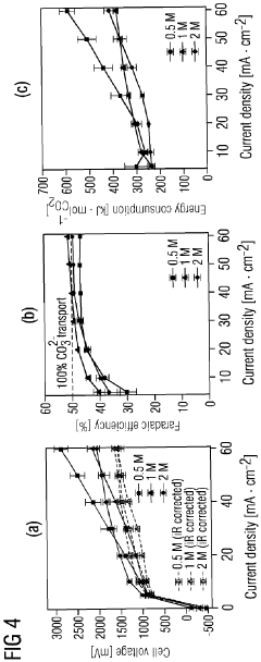 Energy consumption represents another critical sustainability factor. The electrode kinetics directly influence the energy penalty associated with CO2 separation, which typically ranges from 0.5-2.5 GJ/ton CO2 captured. Advanced electrode designs with optimized kinetic properties have demonstrated potential to reduce this energy requirement by 15-30%, significantly improving the technology's overall carbon balance. This improvement is essential for ensuring that the carbon captured exceeds the carbon emitted during the capture process.