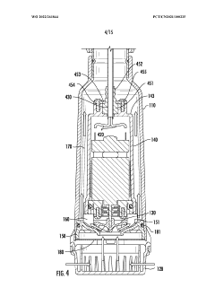 This category focuses on improving the energy efficiency of submersible pumps. It includes innovations in motor design, power management systems, and the use of alternative energy sources. These advancements aim to reduce power consumption, minimize operational costs, and enhance the overall sustainability of submersible pump systems.Expand Specific Solutions04 Specialized submersible pumps for specific applications