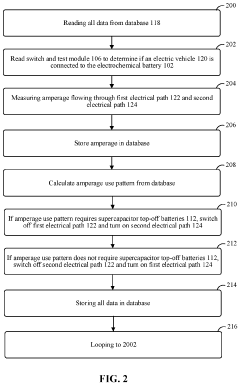 Hybrid systems combining supercapacitors and batteries leverage the complementary strengths of both technologies. These integrated solutions utilize batteries for energy-intensive requirements and supercapacitors for power-intensive demands, optimizing overall system performance. Such hybrid configurations can extend battery life by handling power surges, improve system response times, and enhance energy efficiency in applications ranging from automotive to grid storage systems.Expand Specific Solutions05 Lifespan and degradation mechanisms
