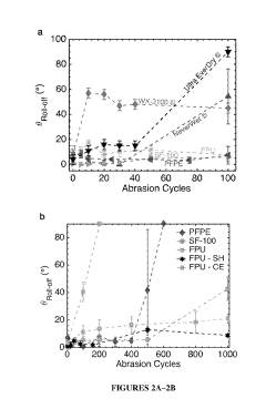 Environmental degradation presents another critical challenge, with UV radiation causing photocatalytic breakdown of organic components in many superhydrophobic formulations. Patent US10723825B2 introduces UV-resistant nanoparticles embedded within the coating matrix, significantly extending outdoor service life from months to years. Similarly, patent EP3687673A1 describes a novel fluorine-free composition with enhanced UV stability through the incorporation of cerium oxide nanoparticles as UV blockers.