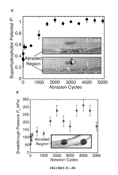 Several newly patented superhydrophobic technologies utilize biodegradable materials and water-based formulations, substantially reducing environmental footprints. For instance, patent US20210032377A1 describes a silica-based superhydrophobic coating using non-toxic solvents and bio-derived silica particles, demonstrating a 75% reduction in harmful emissions compared to conventional alternatives while maintaining comparable water-repellent properties.