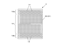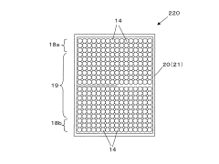 - The battery design incorporates a heat medium with varying heat capacity between the outer peripheral and central portions of the container, along with specific cell arrangements such as close-packed and square arrays, to maintain uniform temperature distribution.