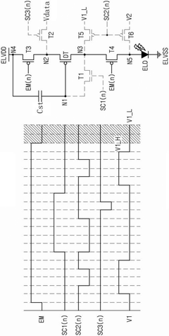 - 通过在刷新率切换的时间点前后调整偏置电压和发光信号的脉冲宽度,利用标志单元、计数器、寄存器单元和比较器等组件,根据刷新帧和保持帧的计数值选择适当的偏置电压和发光信号值,确保亮度的一致性。