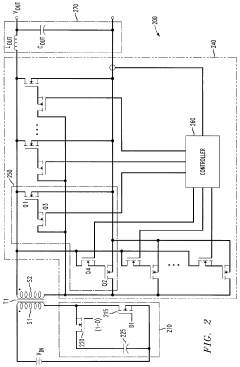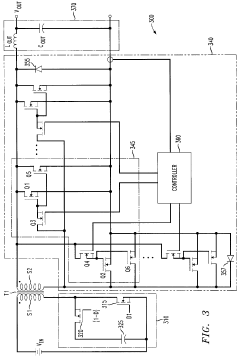 Technical Solution: Delta Electronics has developed an innovative system-level approach to managing synchronous rectifier aging in their power conversion products. Their technology combines hardware design optimizations with advanced control algorithms to address RDS(on) increases throughout device lifetime. Delta's synchronous rectifiers feature specially designed thermal interfaces that minimize temperature cycling, a key accelerator of aging mechanisms. Their solution incorporates a multi-point temperature monitoring system that creates a detailed thermal profile of the device during operation. This data feeds into a proprietary "Aging-Aware Controller" that implements dynamic compensation strategies based on the device's thermal history. Delta has also pioneered a unique "stress distribution" technique that intelligently rotates current loads among multiple parallel devices, effectively extending the overall system lifetime by preventing any single component from experiencing accelerated aging[9]. Their latest generation products include a cloud-connected diagnostic system that aggregates aging data across deployed devices, enabling continuous improvement of lifetime prediction models[10].