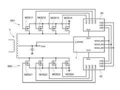 Specialized circuit topologies are designed to improve synchronous rectifier reliability and mitigate the effects of parameter drift. These include redundant configurations that distribute stress across multiple devices, resonant switching topologies that reduce switching losses and thermal stress, and adaptive power management architectures that can reconfigure operation based on detected parameter changes. Some designs incorporate active monitoring and compensation circuits that dynamically adjust operating conditions to maintain performance despite RDS(on) increases throughout the device lifetime.Expand Specific Solutions