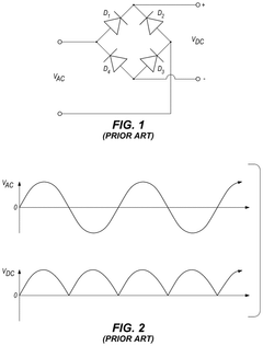 Robustness considerations between GaN and Si synchronous rectifiers include thermal performance, voltage surge handling, and long-term reliability. Si devices generally offer higher avalanche energy capability and thermal conductivity, making them more forgiving in harsh environments. GaN devices, while improving in reliability, typically have lower maximum junction temperatures and require more careful thermal management. However, GaN's higher breakdown field strength provides advantages in high-voltage applications, and ongoing developments in packaging and device structure continue to enhance GaN reliability.Expand Specific Solutions04 Circuit Design Considerations for GaN vs Si Synchronous Rectifiers